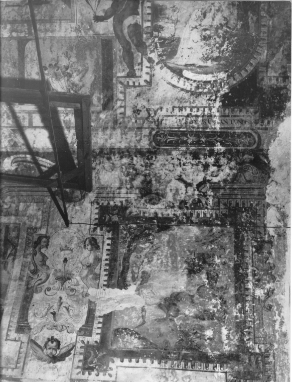 - NOTIZIE STORICO CRITICHE Lo stile degli affreschi presenta caratteri affini al manierismo romano e alla scuola degli Zuccari. L'iscrizione dataria sulla finestra fornisce l'ante quem. Nelle cornici e fra le grottesche sono inseriti i nomi dei confratelli della congregazione, che hanno commissionato i dipinti. Il soggetto della scena non è indicato sulla scheda