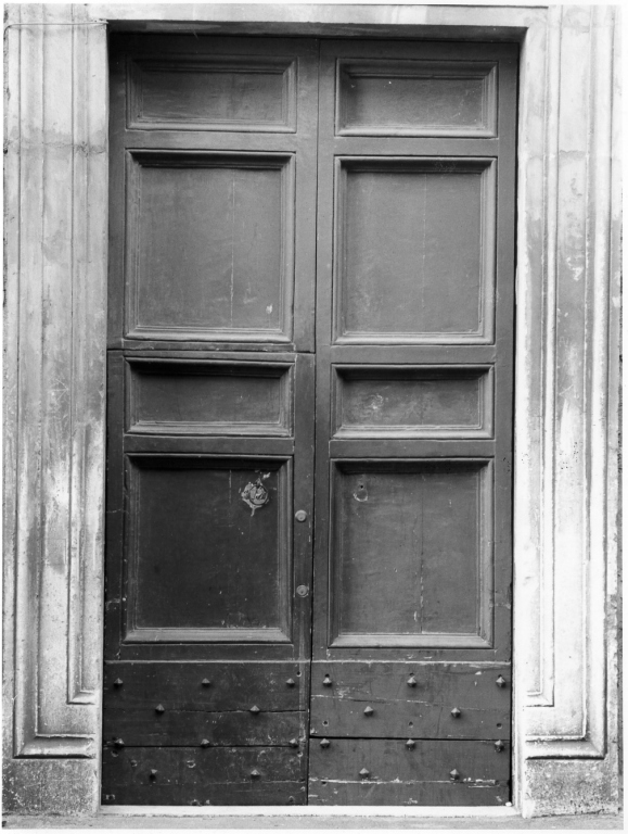 battenti suddivisi a riquadri di forma e dimensioni diverse; in basso sono delle borchie