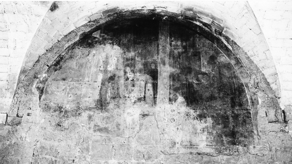 - NOTIZIE STORICO CRITICHE la maggior parte degli affreschi è oggi ridotta allo stato rammentario. Gli studiosi locali ne attribuiscono l'esecuzione al pittore viterbese Angelo Pucciati. I. Faldi, correggendo M. Signorelli (Storia breve dei Viterbo, 1964, p. 380), colloca la nascita dell'artista nel primo decennio del Seicento e individua le radici della sua formazione di pittore in una "cultura di manierismo riformato fioretino" (Faldi 1970, p. 64). L'alterna qualità delle lunette delle quali il Faldi riporta solo le due migliori (Faldi 1970, pp. 294-295) fa pensare alla collaborazione di aiuti la cui mano più incerta è rintracciabile in alcune di esse. Anche per i volti ritratti nelle cornici che si alternano alle lunette sono attribuite al Pucciati. Una serie di medaglioni molto simile esiste presso la chiesa di S. Maria della Quercia presso la quale è un dipinto dello stesso Pucciati