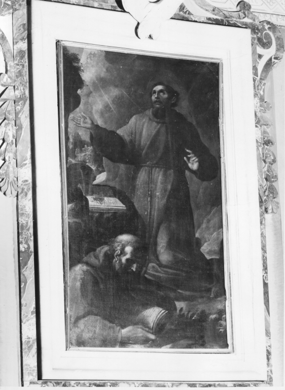 - NOTIZIE STORICO CRITICHE Sicuramente insieme all'altare del coro d'inverno furono realizzate anche questa monumentale cornice con le due laterali ovali (che presentano lo stesso alternarsi di marmi e presentano lo stesso motivo decorativo della mensa)