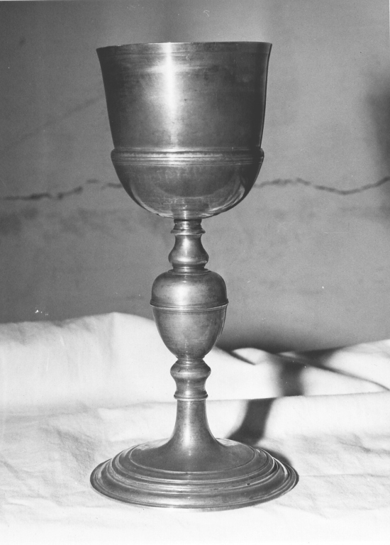 Calice a base rotonda con fusto fuso e tornito, ornato da un semplice listello a rilievo