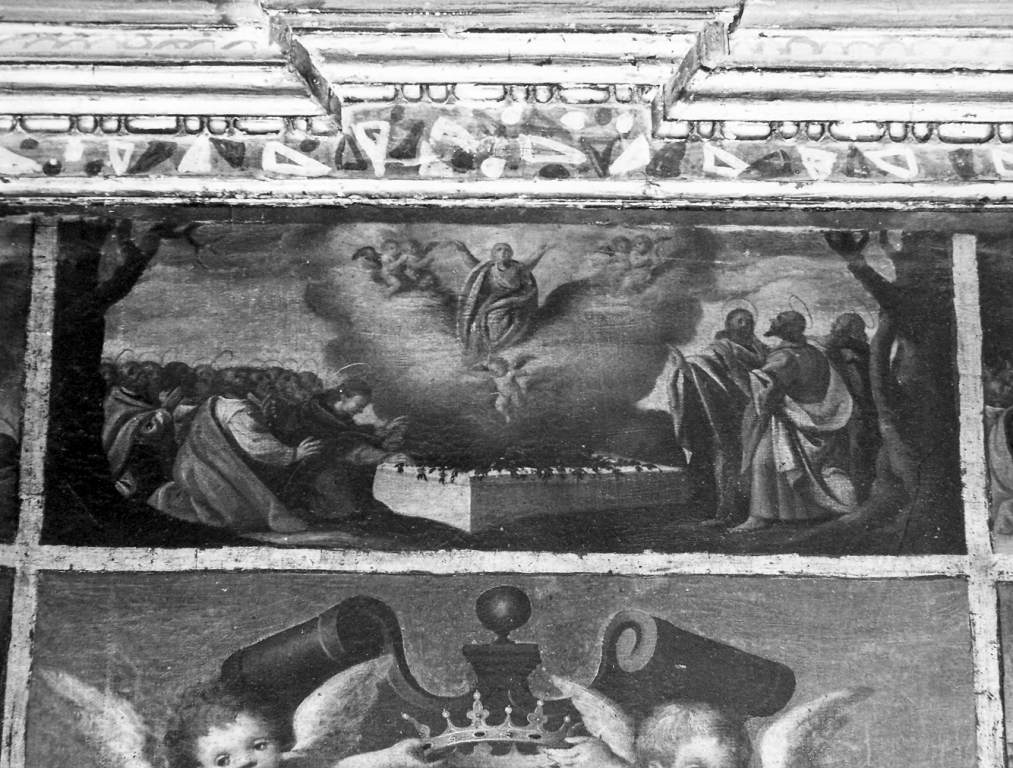 Personaggi: Madonna. Figure: apostoli; angioletti