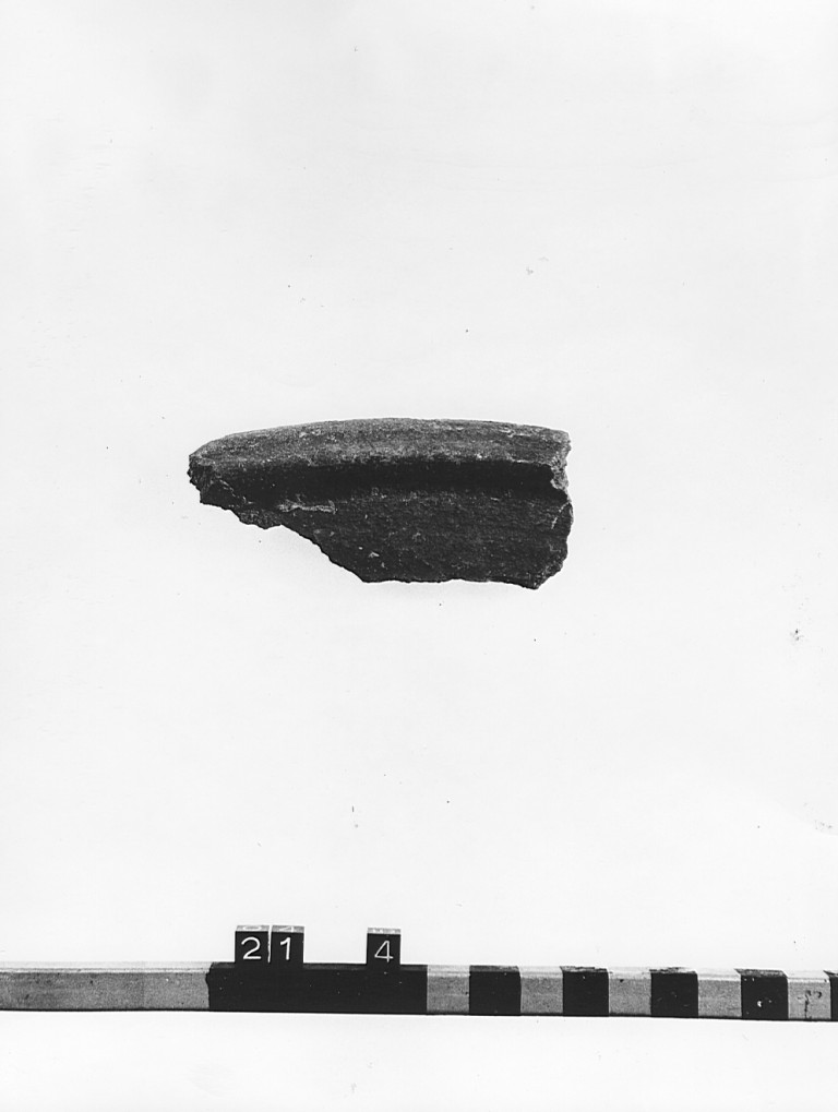 Frammento di vassoio in impasto B conservante parte dell'orlo a listello e della parete