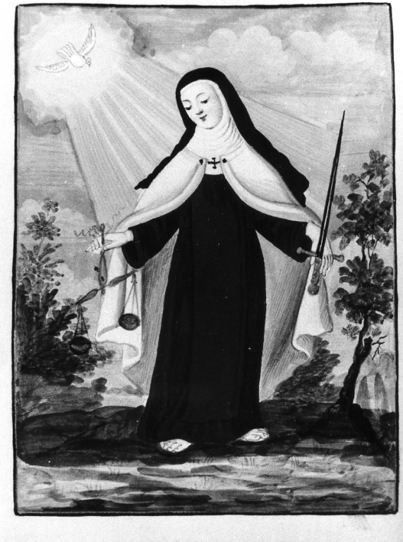 Personaggi: Santa Teresa d'Avila. Simboli: spada; bilancia