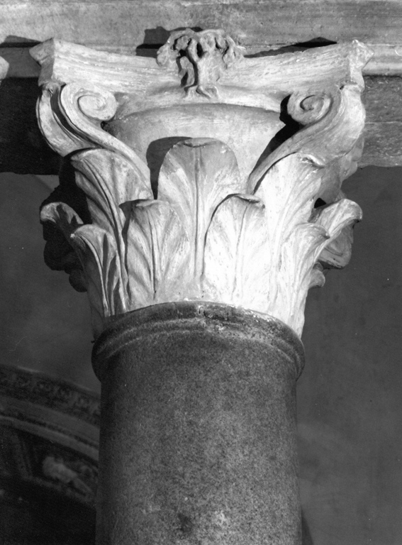- NOTIZIE STORICO CRITICHE I capitelli furono modellati sulle campane scalpellate dei capitelli antichi (IX secolo) nel corso del XVI secolo quando ebbe luogo il restauro dell'interno della chiesa: iniziato all'epoca del card. Carlo Borromeo (1560-1566) tale rifacimento dovette continuare negli anni successivi, perchè nei capitelli si trovano emblemi facenti parte degli stemmi di Gregorio XIV (1590-91) e del card. Filippo Gallo (1600-1605)
