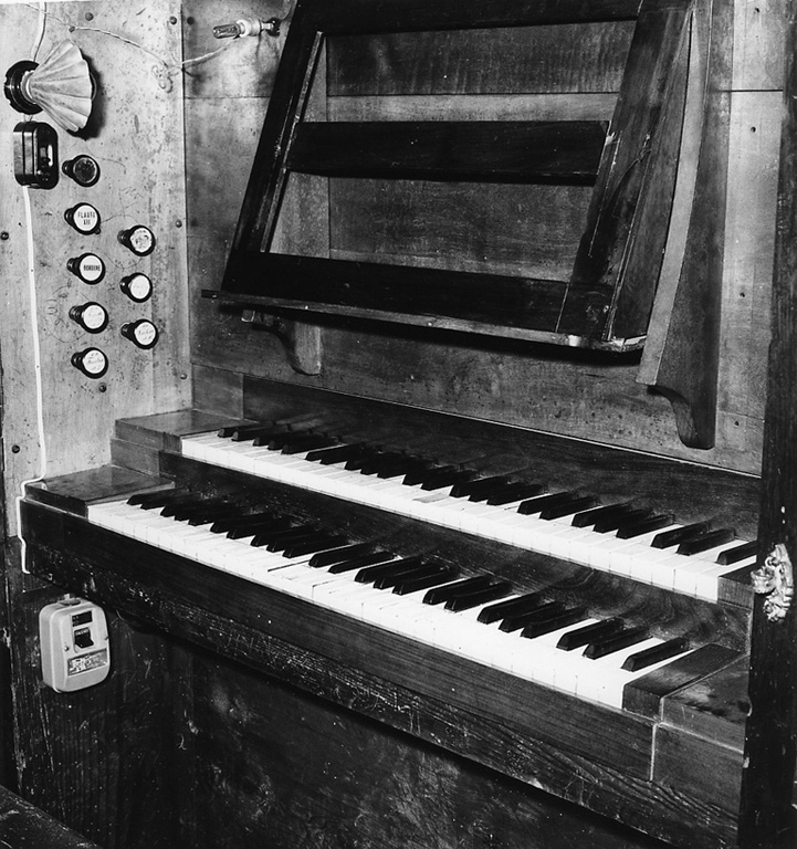- NOTIZIE STORICO CRITICHE Giorgio Guglielmo Trince costruì quest'organo, risultto un po' esuberante per la piccola chiesa. questo fu ivi collocato in sostituzione dell'organo del Seicento di Luca Blasi. La parte superiore degli intagli della cassa risalgono al 1599 e sono opera di Giambattista Montano, mentre la parte inferiore spetterebbe al Carimini