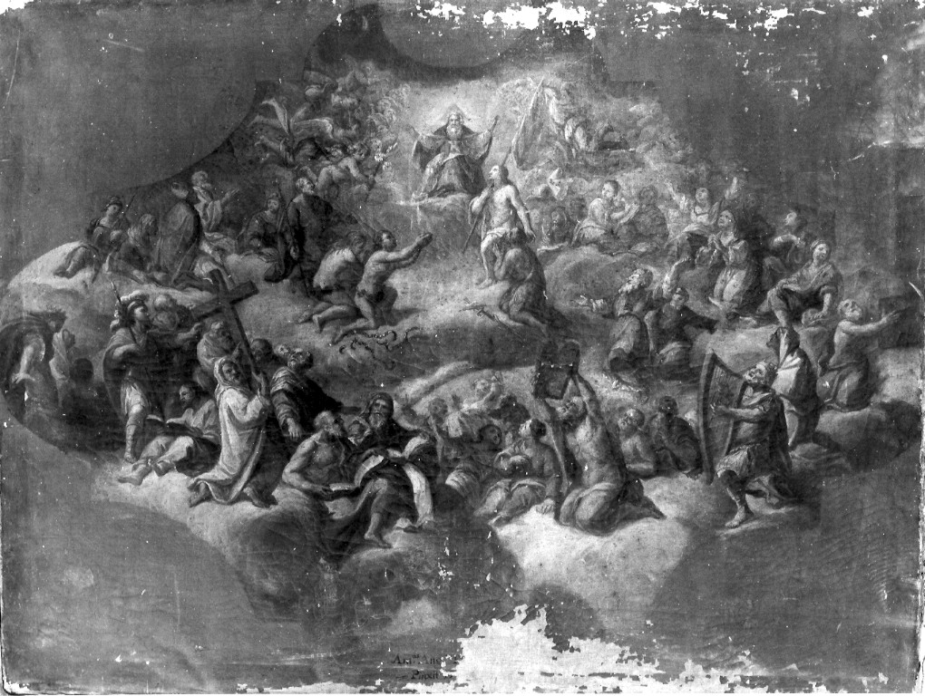 Personaggi: Dio Padre. Figure maschili: santi; profeti; beati. Figure: angeli; cherubini