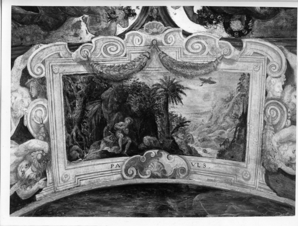 Personaggi: San Paolo. Attributi: (san Paolo) spada. Paesaggi