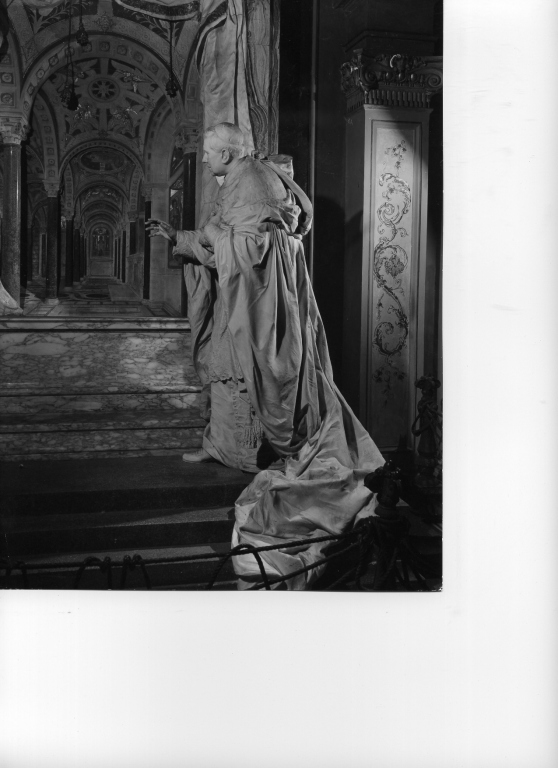 - NOTIZIE STORICO CRITICHE Alla fine del sec. XIX il cardinale Rampolla , segretario di Leone XII, trasformò la cripta semicircolare in una a colonnato. L'opera in esame è stata eseguita da Enrico Quattrini
