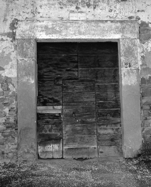 di forma rettangolare con architrave e stipiti squadrati; nella parte superiore un'iscrizione moderna