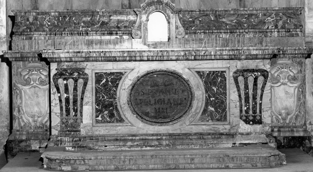 - ISCRIZIONI nell'ovale del paliotto - COR ORA / SS PRIMI ET / FELICIANI / MM - lettere capitali -