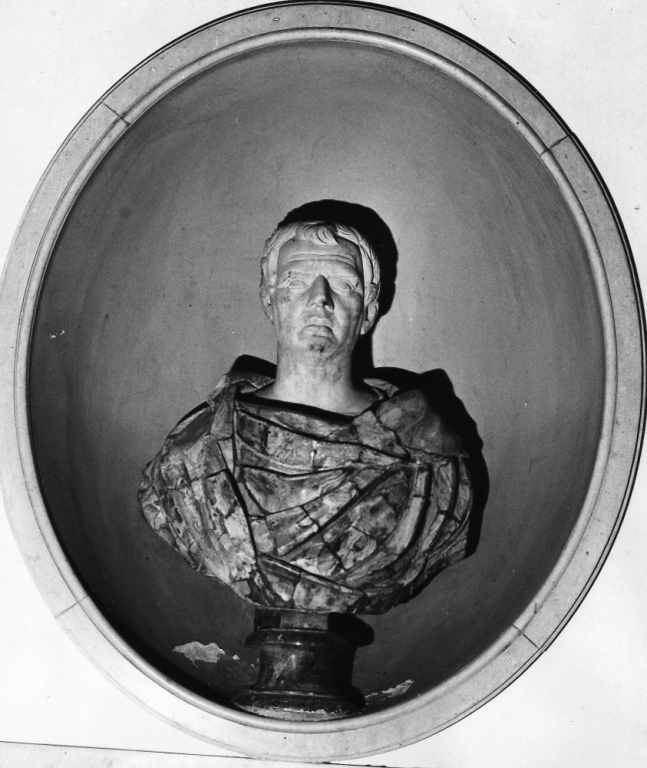 - NOTIZIE STORICO CRITICHE Il busto è da identificare con il ritratto di un illustre personaggio d'età romana. La foggia del costume escluderebbe però un ufficilae o un imperatore. Si tratta comunque di una rielaborazione o copia di un originale d'età imperiale romana, eseguita in età moderna. La qualità è discreta