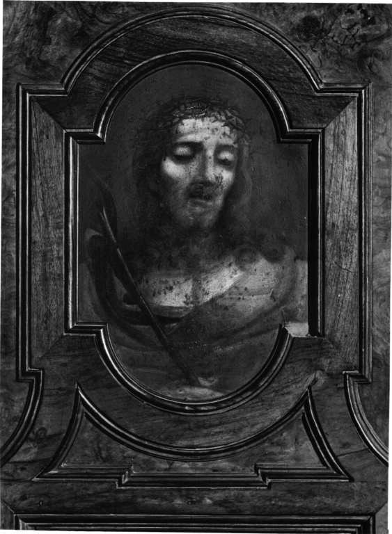 Personaggi: Gesù Cristo. Simboli della passione: corona di spine; flagello