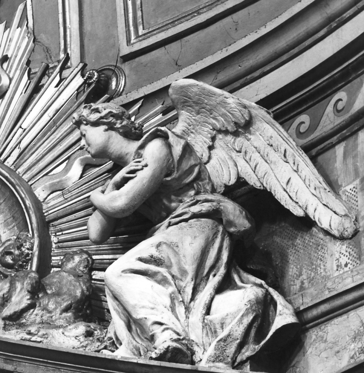 - NOTIZIE STORICO CRITICHE Oltre alle parti affrescate della cattedrale, spetta al Fontana anche l'intera decorazione a stucco, comprendente gli Angeli, le Virtù e i tondi con i Padri della Chiesa disposti sugli arconi delle cappelle e le figure allegoriche poste agli angoli del tamburo della cupola. L'esecuzione del ciclo presumibilmente è contemporanea al resto dei lavori di ridecorazione della chiesa, collocabile cioè tra la fine del settimo e il nono decennio dell'Ottocento: periodo suggerito dall'iscrizione leggibile intorno all'occhio della cupola che menziona Alessandro Spoglia - reggente il vescovato di Montefiascone dal 1863 al 1867, probabile committente dei lavori - e riporta la data del 1890, da ritenere indicativa della conclusione della campagna decorativa. Benché la presa in prestito di forme e motivi da epoche e culture artistiche diverse raggeli l'ispirazione dell'opera, la duttilità della materia, affiancata da un trattamento rapido, quasi "non finito", permette all'artista di raggiungere in questi stucchi effetti pittorici paradossalmente non troppo distanti da quelle "arditezze cromatiche" che contrassegnano la sua produzione pittorica (E. Lavagnino, L'arte moderna dai neoclassici ai contemporanei, Torino 1956, vol. II, p. 778), di cui anzi riscattano in parte la fredda concezione accademica