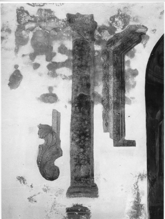 - NOTIZIE STORICO CRITICHE Gli affreschi, ritrovati durante i restauri eseguiti nel 1907, sono quanto resta di una più vasta decorazione pittorica a finte architetture che in origine doveva ricoprire le pareti della chiesa, realizzata tra la fine del Quattrocento e l'inizio del Cinquecento a giudicare dai caratteri stilistici
