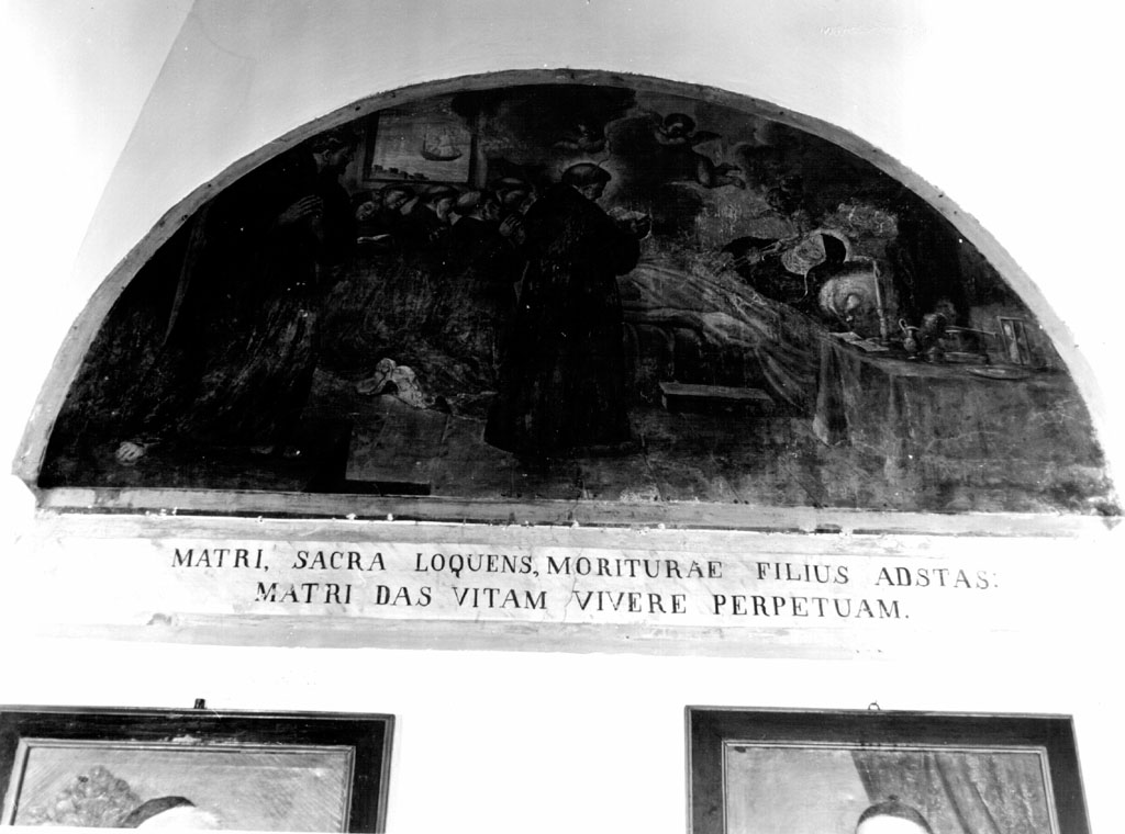 Personaggi: Sant'Agostino; Santa Monica. Figure: frati agostiniani. Oggetti: letto; tavolo; suppellettili