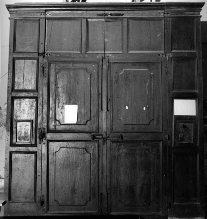 - NOTIZIE STORICO CRITICHE La solida struttura e la linearità decorativa del bussolotto sono tipiche dell'arredamento chiesastico settecentesco; difatti l'opera è da considerarsi realizzata contemporaneamente al portale d'ingresso che reca all'interno l'iscrizione 1746