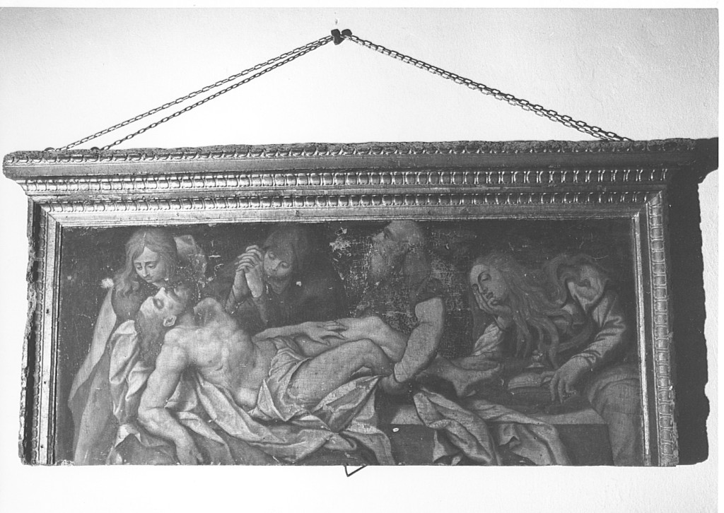 Su fondo scuro sono raffigurati Cristo giacente con perizoma, la Madonna e la Maddalena a destra. La tavola è resecata in basso lungo una linea orizzontale