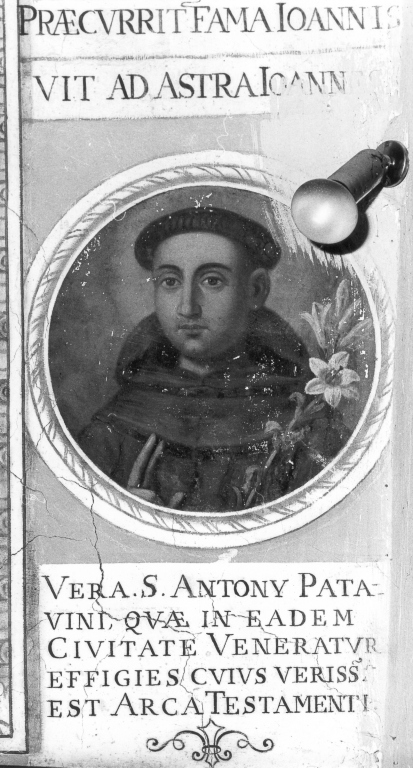 - ISCRIZIONI sotto immagine - VERA S. ANTONY PATA/VINI, QUA IN EADEM/CIVITATE VENERATUE/EFFIGIES CUIUS VERISS.A/EST ARCA TESTAMENTI -