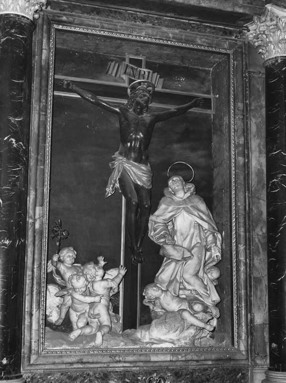 Personaggi: Gesù Cristo; San Giovanni della Croce. Figure: angeli; Oggetti: croce. Abbigliamento religioso