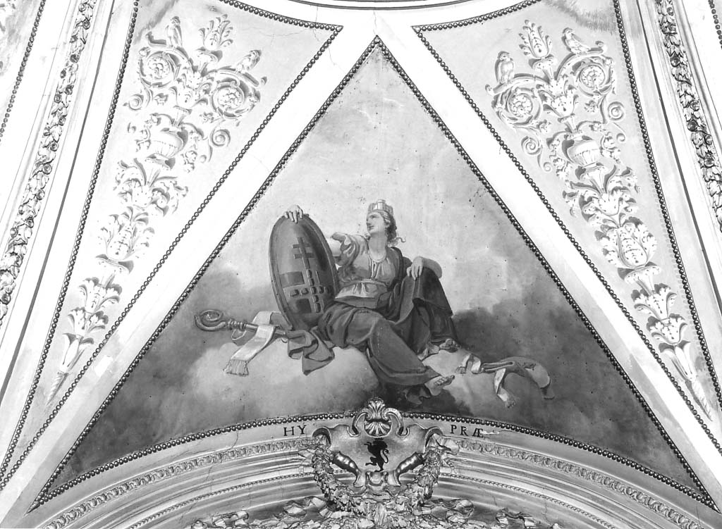 - NOTIZIE STORICO CRITICHE Non si hanno notizie specifiche su questi dipinti, eseguiti con tecnica diversa dall'affresco centrale e raffiguranti le allegorie delle città belghe e della contea di Fiandra; la fattura è stilisticamente abbastanza vicina all'affresco centrale, tuttavia le resa del panneggio è assai più pesante e presenta minore accuratezza nell'esecuzione. Citati da Croft Murray (1950) come opere più tarde rispetto all'affresco centrale, forse contemporanei alla decorazione della volta del presbiterio