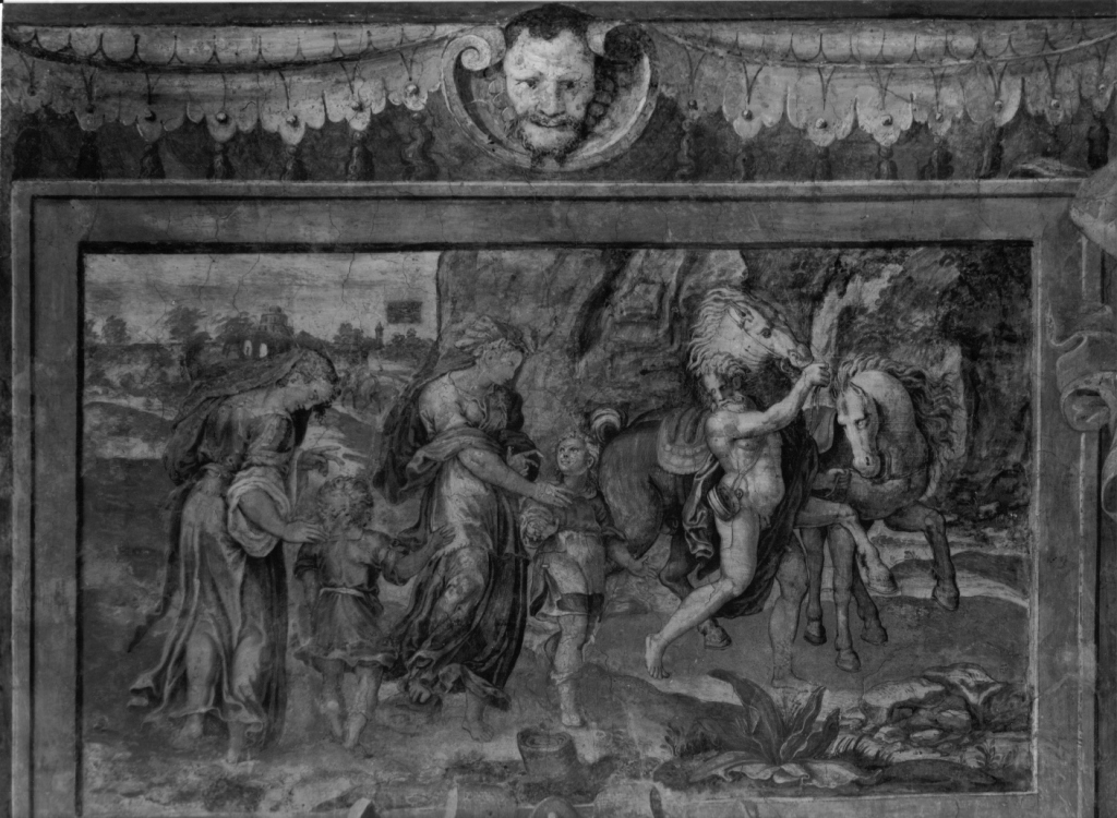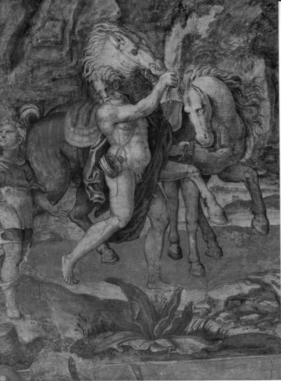 - NOTIZIE STORICO CRITICHE I due fanciulli rappresentati, uno leggermente più grande dell'altro, potrebbero essere Carlo e Federico Borromeo. I due destrieri li attendono probabilmente per percorrere due strade diverse: quella della vita attiva (Federico) e quella della vita contemplativa (Carlo)