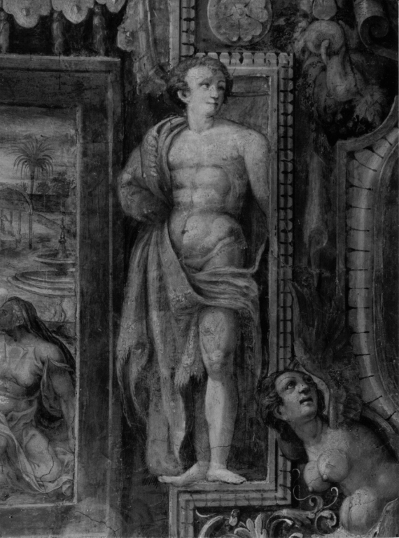 Figure maschili. Figure femminili: donne. Animali: cavallo. Fenomeni naturali: fuoco. Paesaggi: paesaggio cittadino. Elementi architettonici: fontana; portico; edifici. Costruzioni: fossa a gironi. Personificazioni: Inganno; Vanagloria; Lussuria; Perdita del controllo. Attributi: (Inganno) maschera. Oggetti: corona