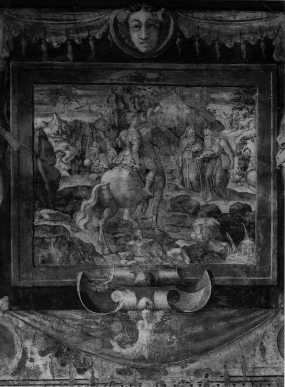 Figure maschili: uomini; vecchi; giovane; saggi; filosofi. Animali: cavallo. Fenomeni naturali: sorgente d'acqua. Paesaggi: paesaggio roccioso. Personificazioni: Inganno; Vanagloria; Lussuria; Perdita del controllo. Attributi: (Inganno) maschera. Oggetti: mappamondo; libri; squadra