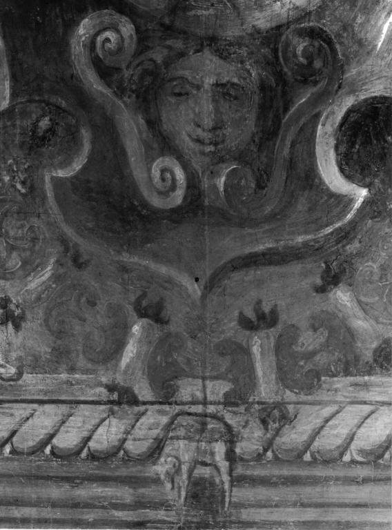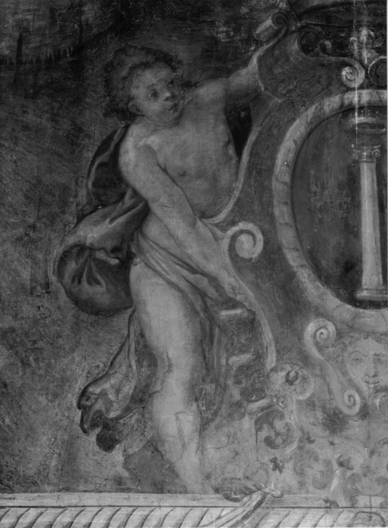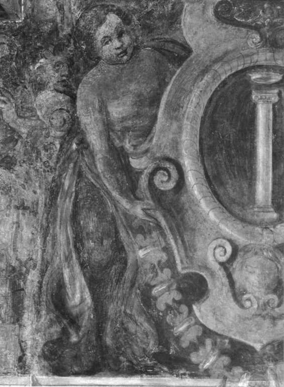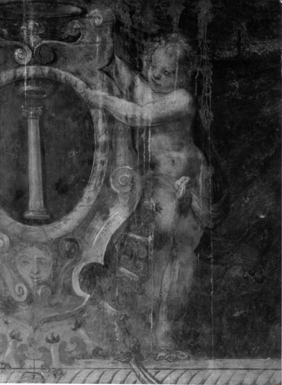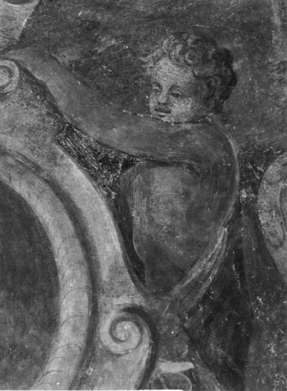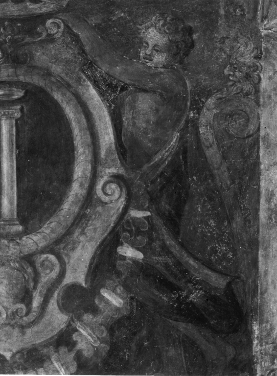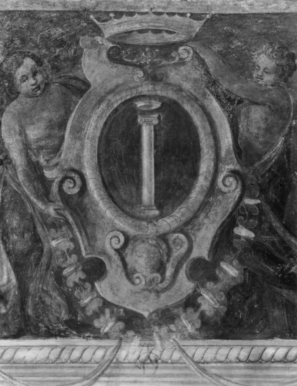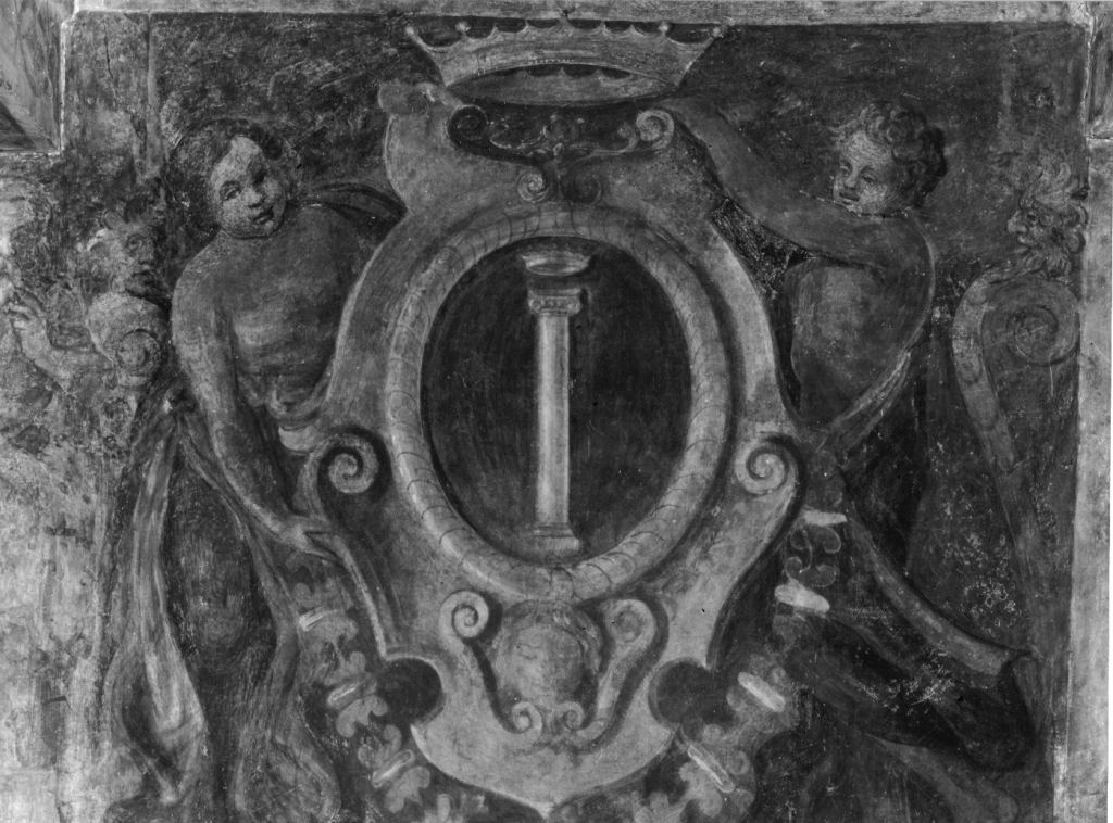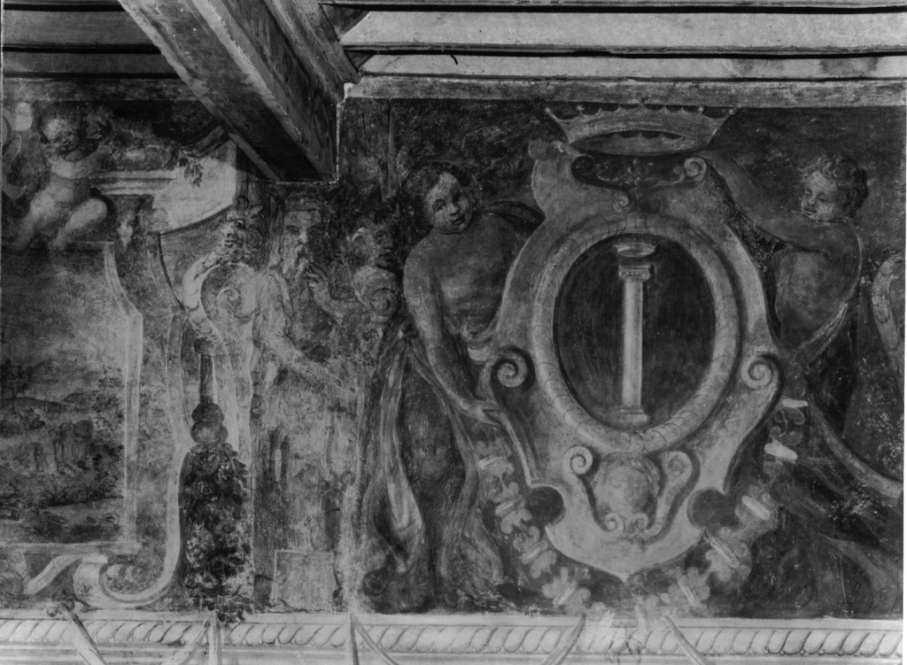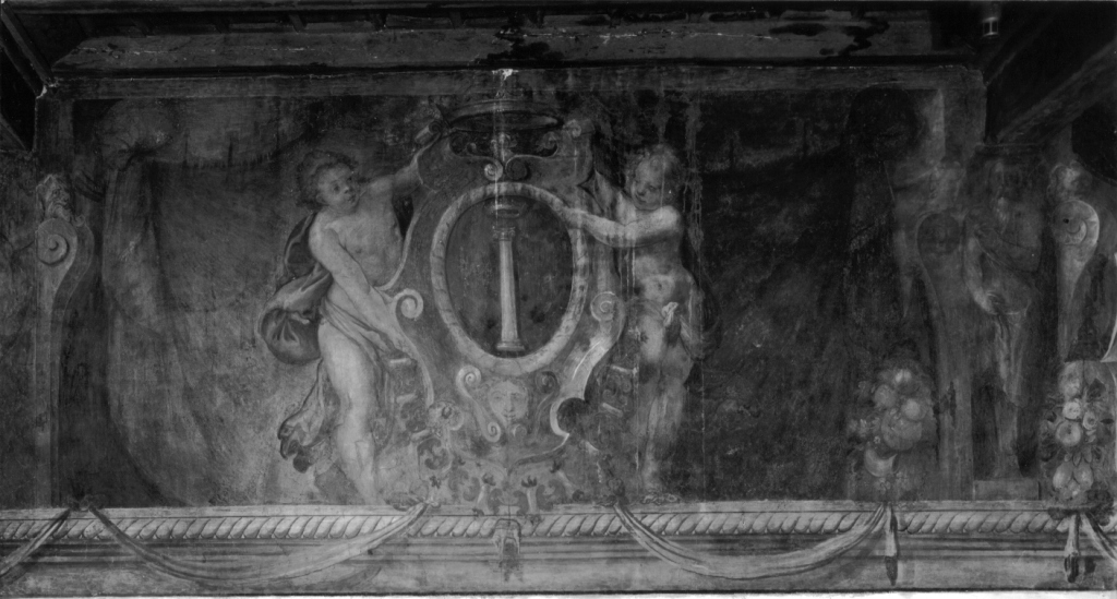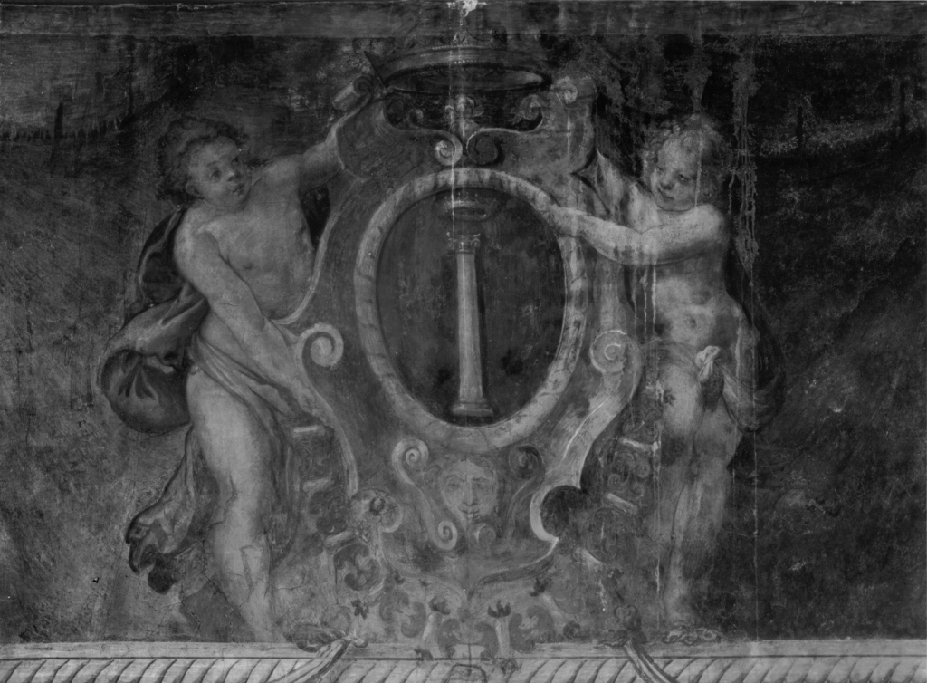 - NOTIZIE STORICO CRITICHE Dopo un intervento di restauro che ha rimosso le evidenti ridipinture ottocentesche, la coppia reggistemma all'estremità della parete destra è stata completamente cancellata