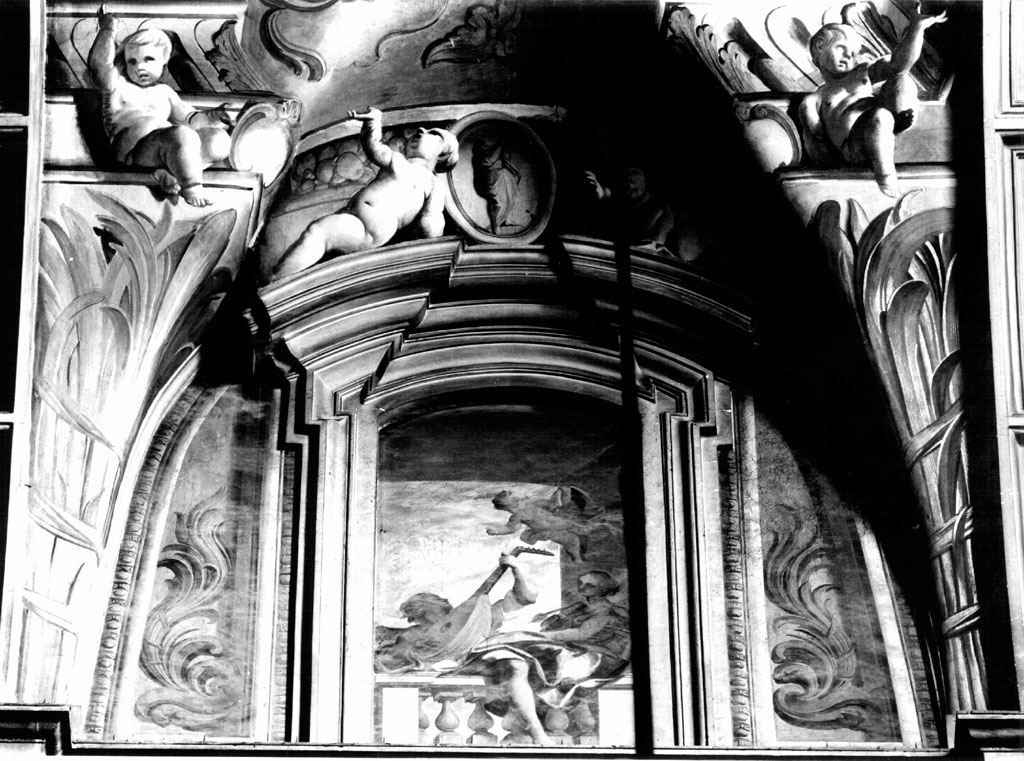 Figure: angeli. Strumenti musicali: mandola. Elementi architettonici: balaustrata