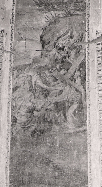 - NOTIZIE STORICO CRITICHE Tutti i requisiti stilistici rinviano allo steso autore che affrescò l'intero ciclo, per il quale si è proposto il nome di Marcantonio dal Forno. Da notare, ancora una volta, come il taglio compositivo e l'ambientazione paesaggistica risentano dell'influenza del Muziano