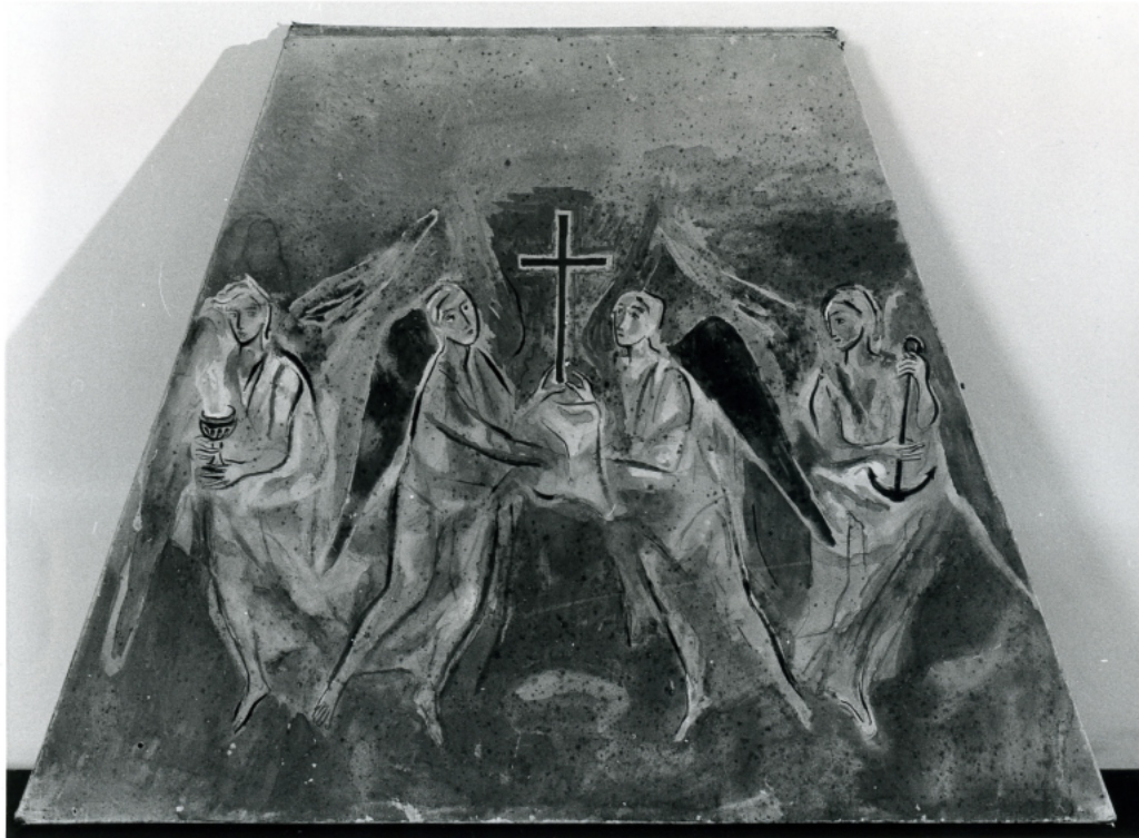 Soggetti sacri: angeli; Simboli: croce; ancora; fuoco