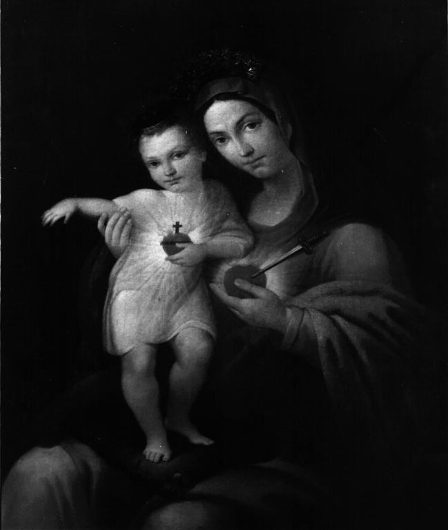 - NOTIZIE STORICO CRITICHE La Madonna e il Bambino tengono nelle mani i Sacri Cuori. La datazione indicata è desunta dall'iscrizione posta sulla parete di fondo dell'altare, in alto