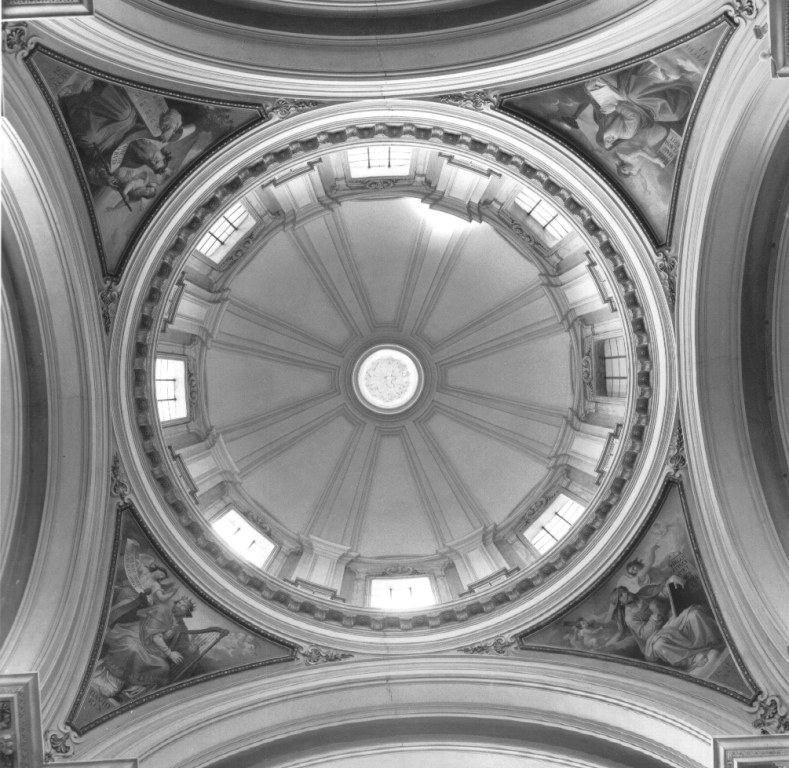 - NOTIZIE STORICO CRITICHE Unico brano superstite della decorazione della cupola che il Fontana realizzò in occasione della risistemazione della chiesa sotto Pio IX e che venne scialbata nel 1954. In quest'opera l'artista mostra aperture verso il purismo del Minardi