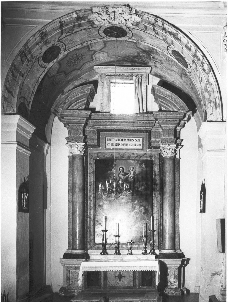 - ISCRIZIONI al centro dell'architrave - DISCITE A ME QUIA MITIS SUM/ ET HUMILIS CORDE MATTH XI 29 - a pennello -