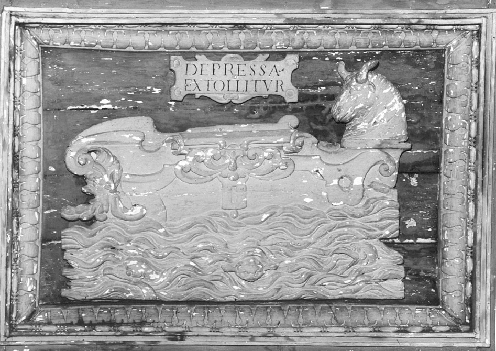- NOTIZIE STORICO CRITICHE Il rilievo, assieme al suo compagno, fa parte della decorazione del soffitto rappresentante i simboli degli Evangelisti. E' significativa la ripetizione della Navicella dove è inserito il bue di San Luca. Si vuole così rendere ancora più esplicito il valore predominante di questa immagine-simbolo all'intreno dell'iconografia del soffitto di S. Maria in Domnica