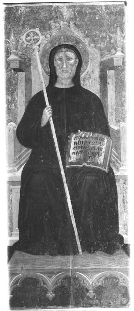 - ISCRIZIONI al centro destra - AUSCULTA FILI PRAECEPTA MAGISTRI - a pennello -