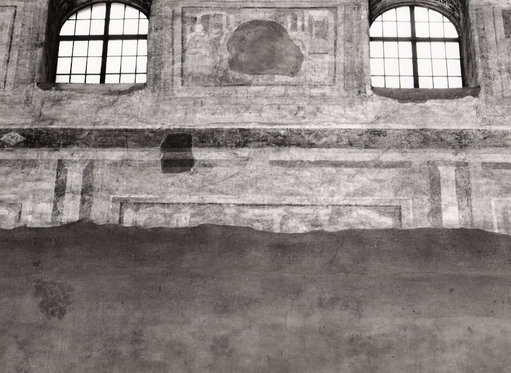 - NOTIZIE STORICO CRITICHE Degli affreschi, irrimediabilmente danneggiati dagli scialbi settecenteschi, è stato desunto il soggetto dalle descrizioni che agli inizi del secolo ne diede Giovenale. Considerando il ciclo come il completamento dei riquadri veterotestamentari, in quanto prefigurazione di Cristo, è possibile tuttavia cogliere ancora l'intento unitario di concezione della programmazione decorativa all'interno della chiesa. Gli affreschi sono da datare al pontificato di Callisto II (1119-1124)