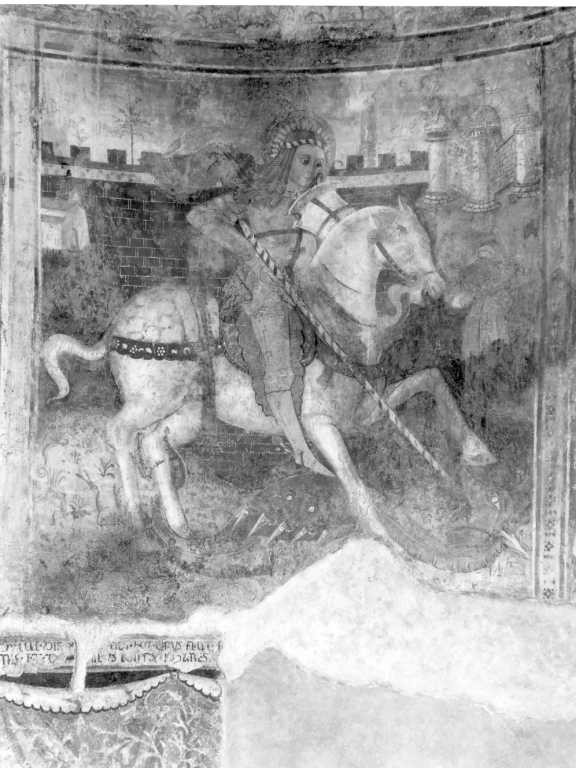 Personaggi: San Giorgio. Attributi: (San Giorgio) cavallo; drago