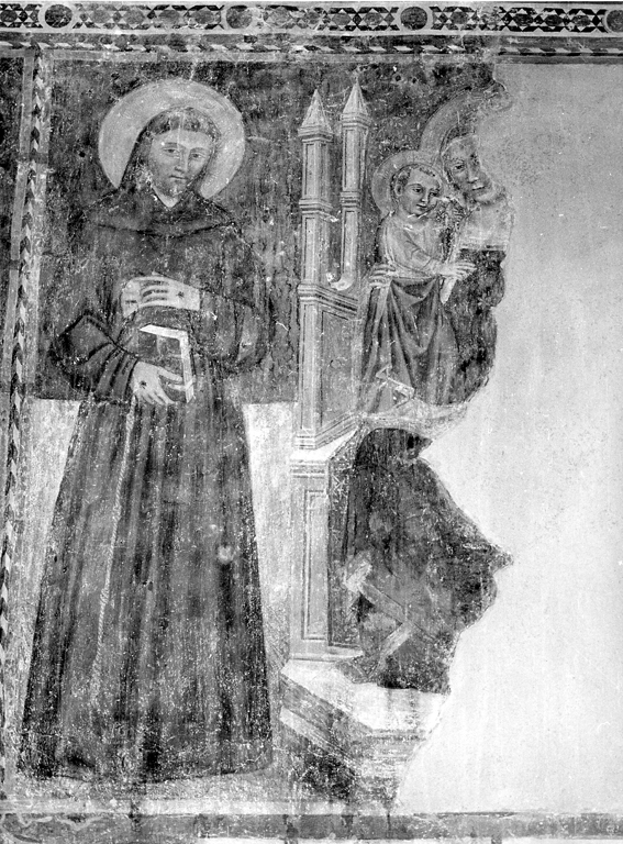 - NOTIZIE STORICO CRITICHE E' una delle più interessanti opere presenti all'interno della chiesa. L'autore del doppio trittico sembra appartenere all'area umbro marchigiana, per il colorito tenue, i contorni secchi e la sobrietà della composizione. Fu commissionato sicuramente da uno dei frati francescani che abitavano il convento annesso alla chiesa: esso è infatti raffigurato ai piedi del trono della Vergine di sinistra