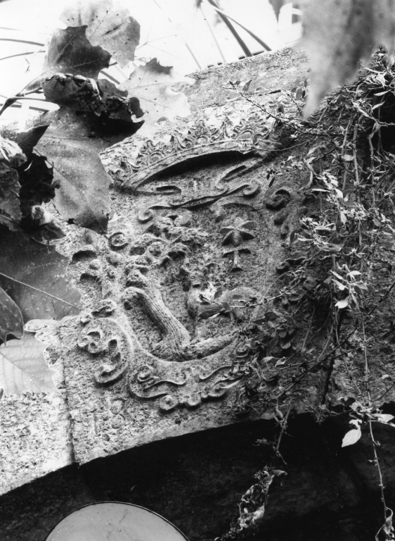 bassa è una vasca mistilinea; arco privo di decorazione racchiude vasca a parallelepipedo decorata sulla fronte da due valve di conchiglia ai lati di un mascherone centrale; nicchia decorata in alto da valva di conchiglia. Nella chiave dell'arco è uno stemma