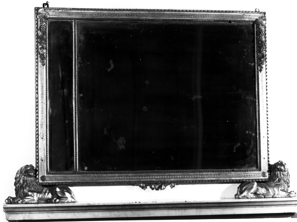 Specchio con cornice poggiata su due leoni accucciati. Stile tardo Luigi XVI