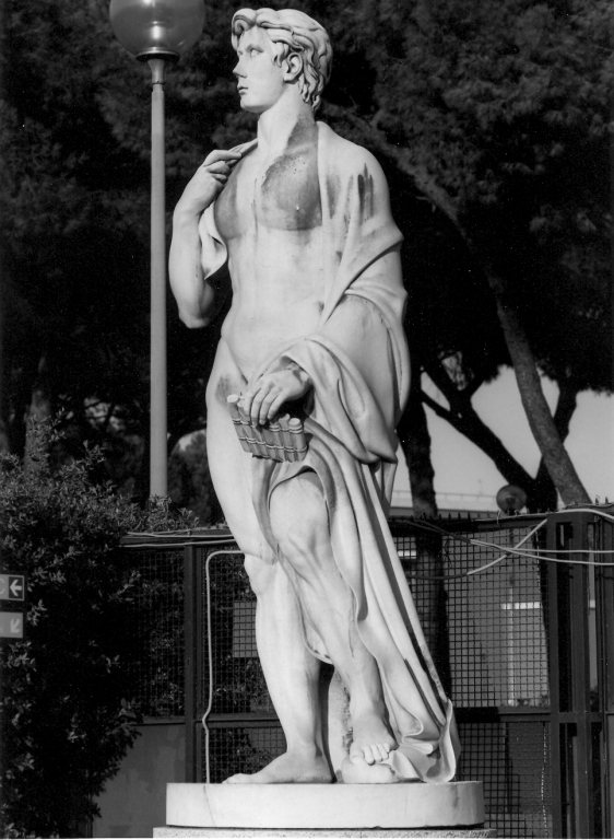 Figure: musico. Oggetti: manto. Strumenti musicali: flauto