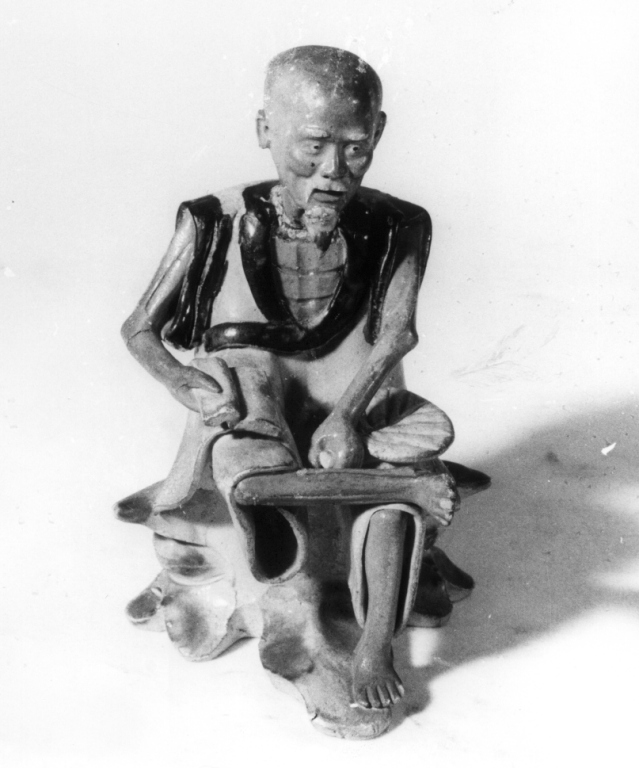 Figure: vecchio asceta. Oggetti: libro; ventaglio