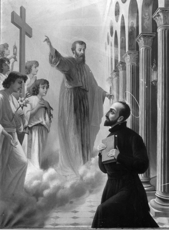 un santo redentorista ha la visione di San Paolo che gli indica la croce