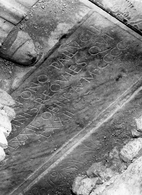 - ISCRIZIONI in basso - ANGELO ALBERTONIO PALLUCII/ FILIO PEREMNIS REQUIES QUI/ VIX. AN. LXXII. OBIIT. A. M.CCCC/.LXXII - lettere capitali -