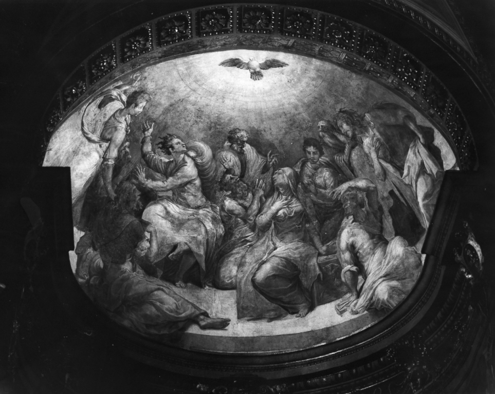 Figure maschili: discepoli. Simboli: colomba (Spirito Santo)