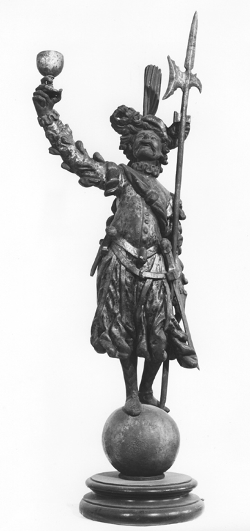Figure: lanzichenecco. Armi: alabarda. Attività umane: brindare