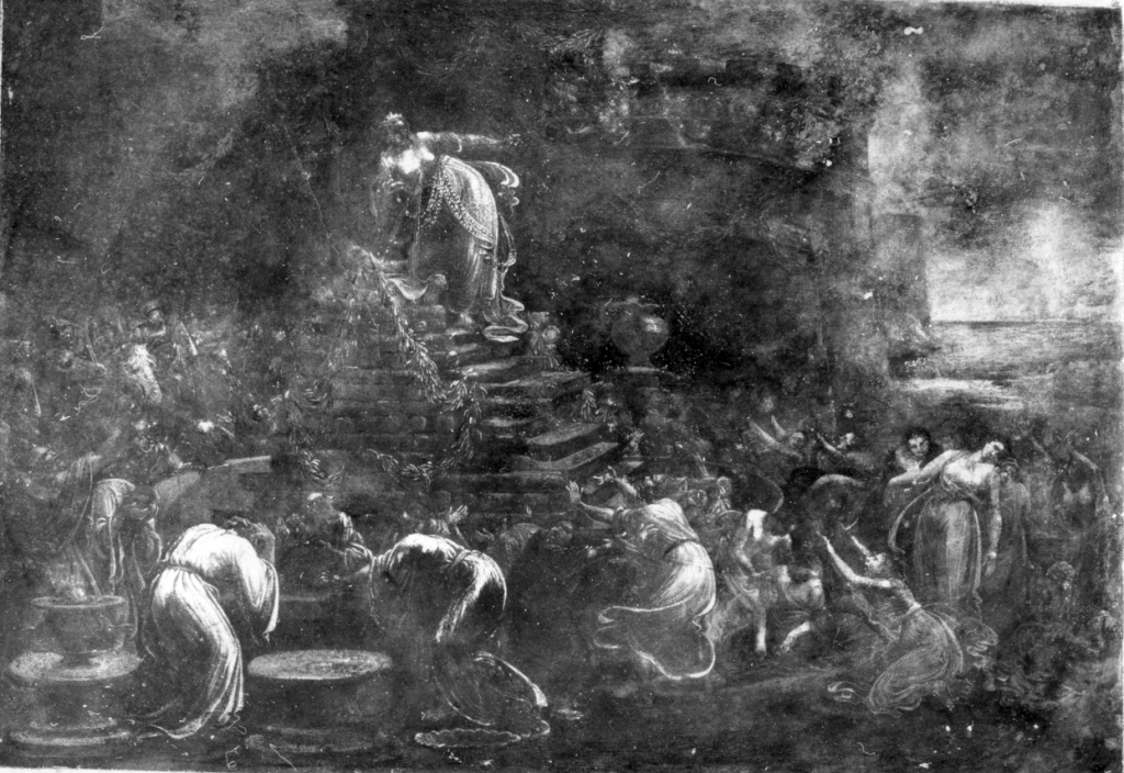 - NOTIZIE STORICO CRITICHE fa parte di una serie di affreschi staccati (da PV 1440 a PV 1478) probabilmente provenienti dal Casino della vigna dei Gesuiti presso il Macao, demolito nel 1872 (vedi catalogo dell'Esposizione Internazionale di Roma del 1911)