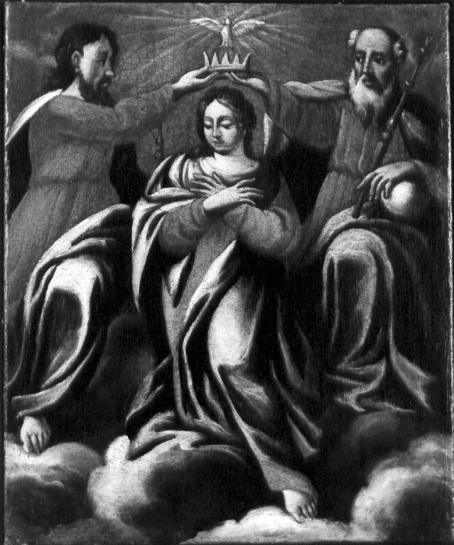 Personaggi: Dio Padre; Gesù Cristo; Madonna. Allegorie-simboli: colomba dello Spirito Santo
